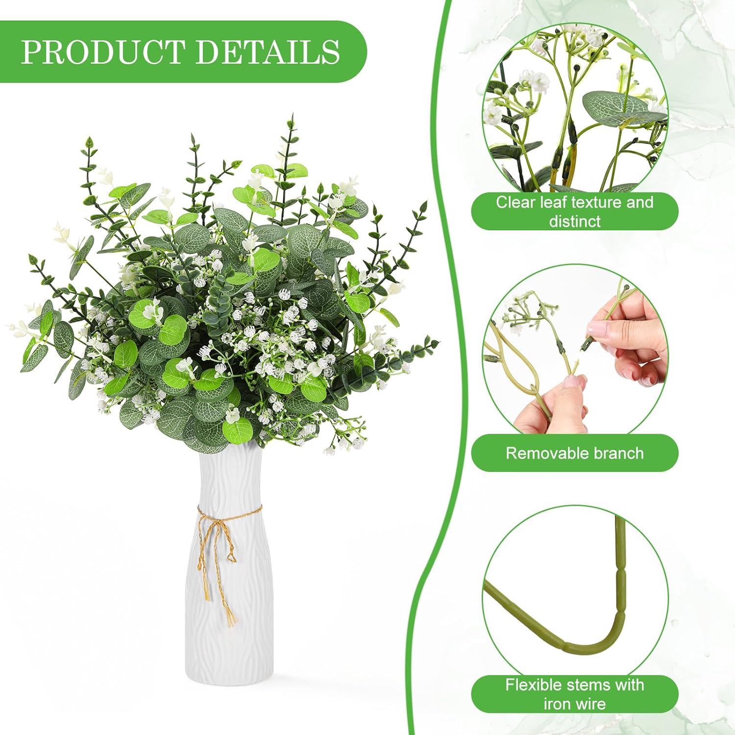 Create lasting botanical beauty with our ready-to-use 100-piece artificial greenery bundle. This curated set includes 20 babys breath flower stems, 40 eucalyptus stems, and 40 silver dollar eucalyptus leaves—the perfect mix for lush, professional-looking arrangements without the cost or upkeep of fresh florals. Key Features & Benefits: Complete Value Set: Everything you need in one purchase. The balanced ratio of filler flowers to varied greenery allows for instant, full arrangements. Fully Adjustable Stems: Each stem contains a flexible wire core, allowing you to easily bend, shape, or trim for a perfect custom fit in any vase or project. Remarkably Lifelike: Featuring realistic textures, natural veining, and subtle color variations, our artificial stems offer authentic beauty that stays vibrant year after year. Endless Versatility: The ideal foundation for DIY wedding decorations, bouquets, centerpieces, and home decor. Perfect for both everyday accents and special occasion styling. Product Specifications: Total Pieces: 100 Stems Bundle Includes: 20 Babys Breath Flowers, 40 Eucalyptus Stems, 40 Silver Dollar Eucalyptus Leaves Approx. Length: 13-15 inches (natural variation for realistic layering) Material: High-quality faux materials with flexible wire-in-stem construction Best For: Crafting 1-2 large centerpieces or several medium arrangements. Stems can be easily adjusted for smaller or larger projects.