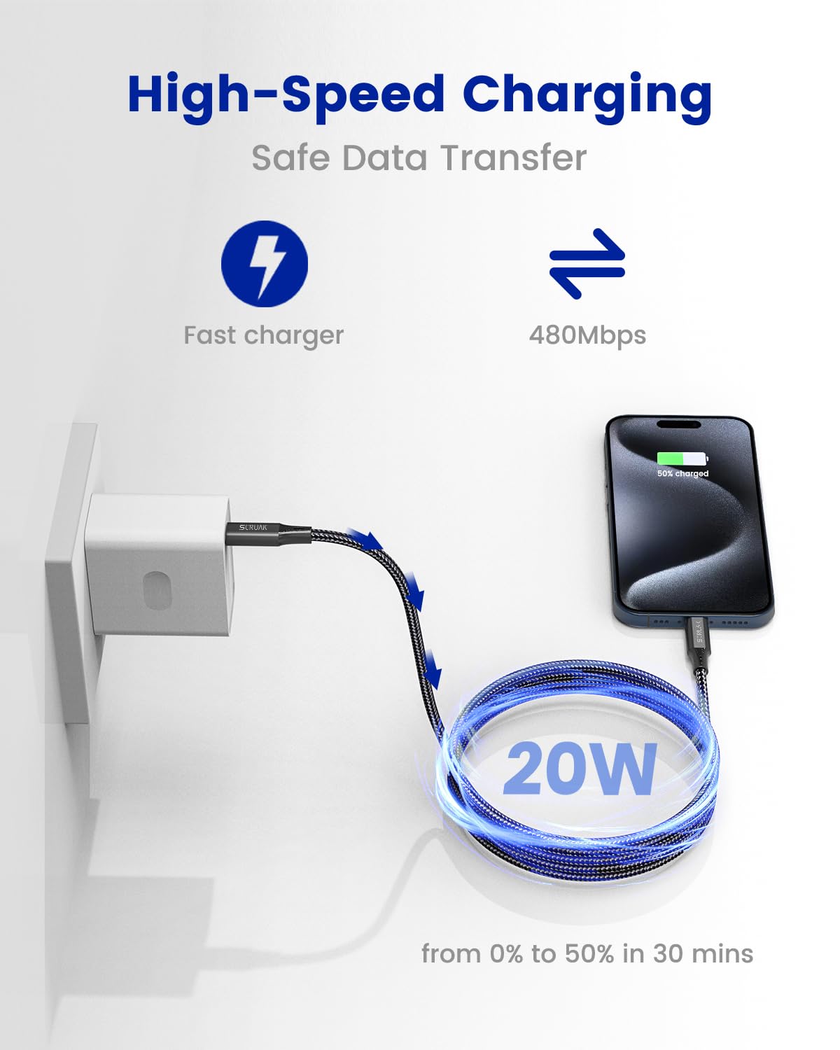2Pack Super Long iPhone 17 16 Series Fast Charger Cord(20FT/6M Nylon)PD Fast ChargingSupports high-speed PD charging for your Apple 17 16, 2.5× faster than USB A iPhone 17 16 cable.Safe Data TransferSupports data transmission up to 480Mbps, ensures the safety of your Apple devices to easily transfer music, files, pictures and videos between iPhone and MacBook.Nylon Braided iPhone ChargerThe 20 feet extra long iPhone 17 16 charging cord has a durable nylon braided design, sturdy nylon fiber cover makes the cable more durable, bendable, and makes it has extremely high resistance against wear and splitting, and gives it a more stylish and elegant appearance.Plenty Long SizeThis 16 ft iphone 17 16 pro usb c cable fast charging is long enough and flexible for many occasions, charging Apple 17 16 in the bedroom, living room, kitchen, office and outside.Compatible Devices:For Smartphones:iPhone 15/15 Plus/15 Pro/15 Pro MaxiPhone 16/16 Plus/16 Pro/16 Pro MaxiPhone 17/17 Air/17 Pro/17 Pro MaxGoogle Pixel 6 Pro / 4 / 4XL / 3a / 3a XL / 3 / 3XL / 2 / 2XLSamsung Galaxy S23 / S22 / S21 / S20 / S20+ / S20 / S20/ S21 / S21+ / S21 / S22For iPad:iPad Pro 12.9 inch 6th/5th/4th/3th,iPad Pro 11 inch 4th/3th/2th/1thiPad Air 5th (2022), iPad Air 4th (2020), iPad Mini 6th Gen (2021)NoteCharger not included.Recommended for use with 20w official chargerIn the Package20 FT/6M USB C to USB C Cable*2Welcome Guide *1