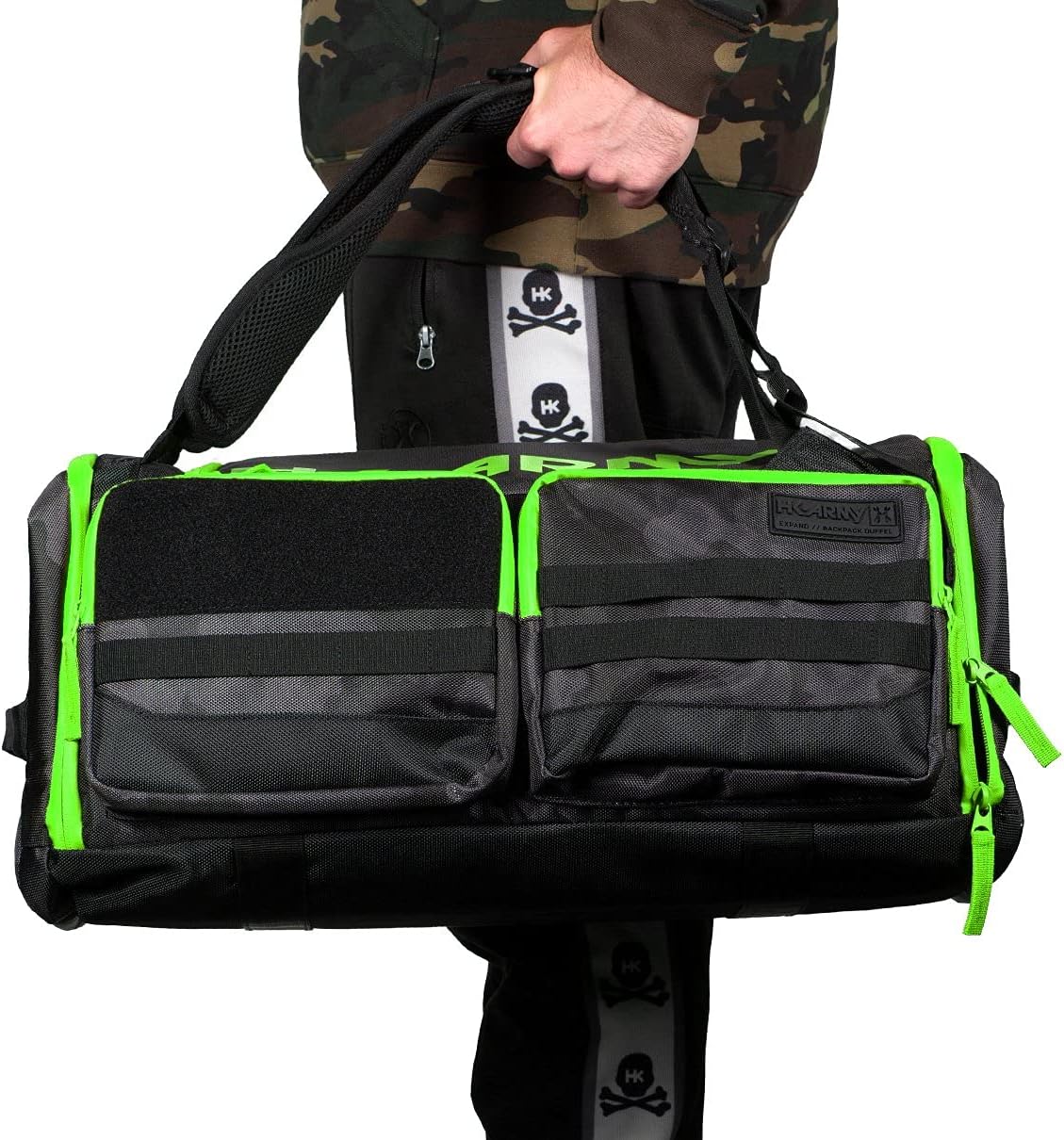 Grab your gear and go with the all-in-one Expand Gear Bag Backpack designed with the paintball athlete in mind - this versatile bag can be carried like a duffel or strap it on your back for the ultimate paintball gear bag backpack. The Expand Gear Bag capacity can be increased by 30% by simply fully opening the bottom compartment. The exterior side pockets have molle webbing for additional attachment points.