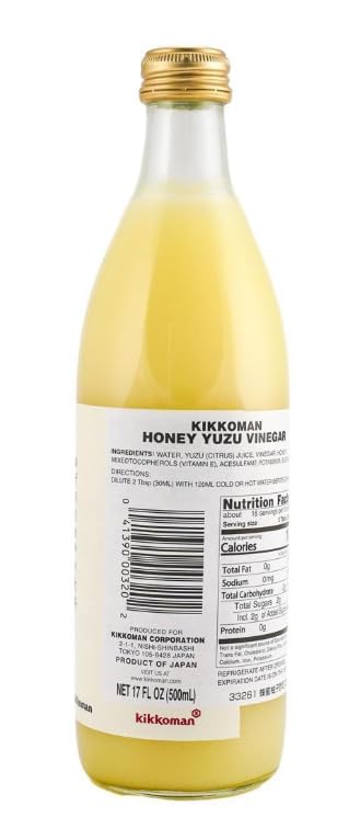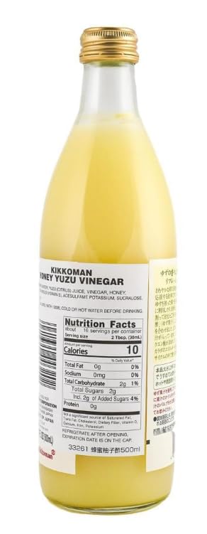 Enjoy a refreshing Japanese classic with Kikkoman Yuzu Honey Vinegar Drink Concentrate. This versatile concentrate blends aromatic yuzu citrus juice with honey and a mild vinegar for a bright, smooth, and well-balanced flavor. Traditionally enjoyed as a diluted beverage, this yuzu honey vinegar can also be used in the kitchen as a ready-made base for salad dressings, marinades, and light sauces. Simply mix with water or sparkling water for a refreshing drink, or combine with oil, soy sauce, or sesame oil to create an easy Japanese-style vinaigrette. Designed to be diluted approximately 5 times, this concentrate allows you to adjust strength to taste for both drinks and recipes. Suggested dilution: 1 part concentrate to 4–5 parts water (adjust to taste)
