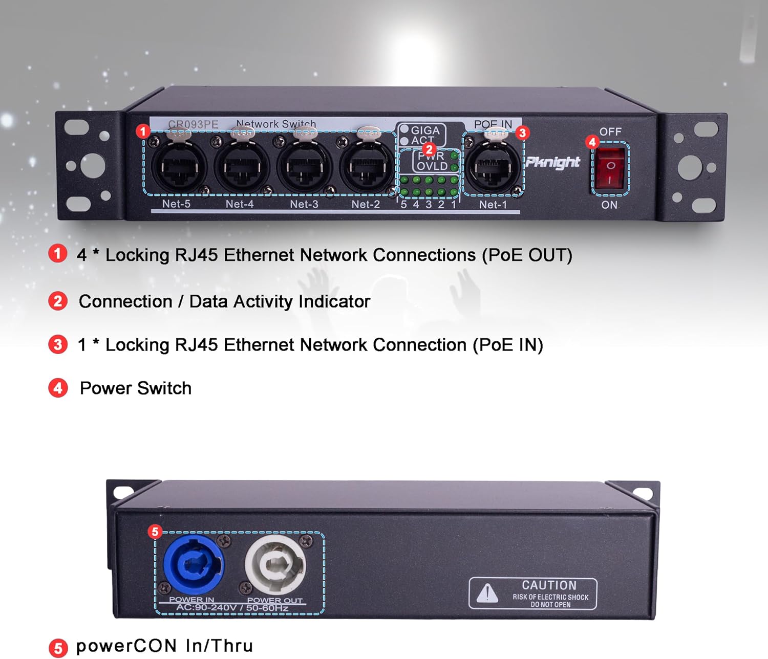 Pknight Stage Signal etherCON Network Switch POE Available